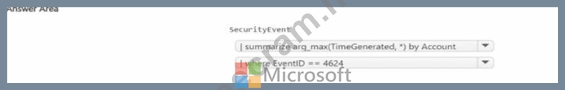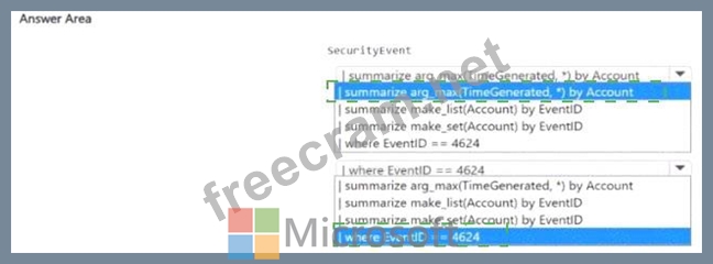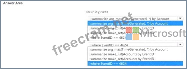 You need to build a KQL query in a Microsoft Sentinel workspace. The query must return the SecurityEvent record for accounts that have the last record with an EventID value of 4624. How should you complete the query' To answer, select the appropriate options in the answer area.