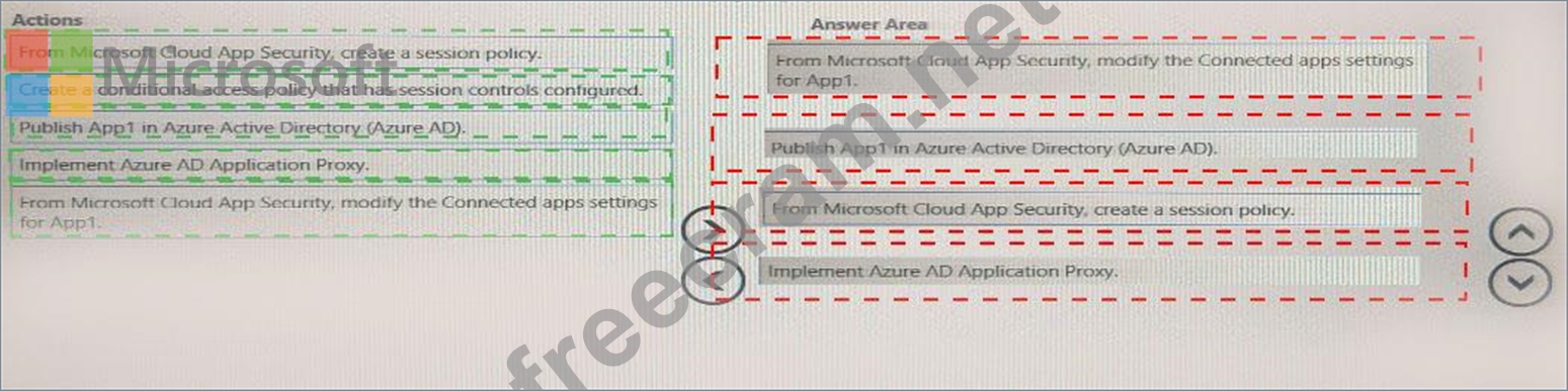 You need to enable real-time session-level monitoring of App1 by using Microsoft Cloud app Security.