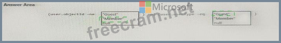 How should you complete the dynamic membership rule? To answer, drag the appropriate values to the correct targets. Each value may be used once, more than once, or not at all. You many need to drag the split bar between panes or scroll to view content.