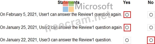 On January 15, 2021, you create an access review as shown in the exhibit. (Click the Exhibit tab.)