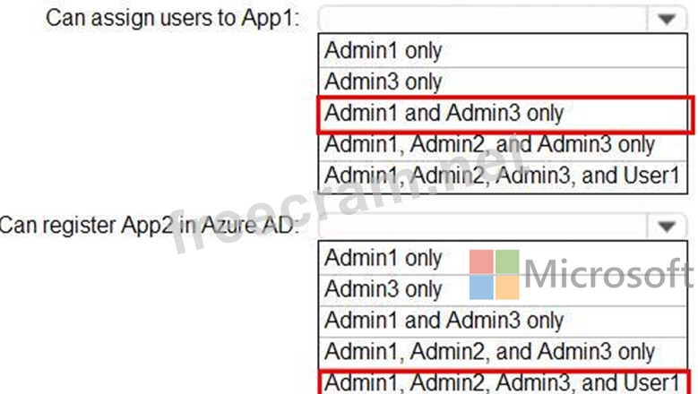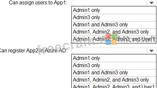 You need to identify who can assign users to App1, and who can register App2 in Azure AD.