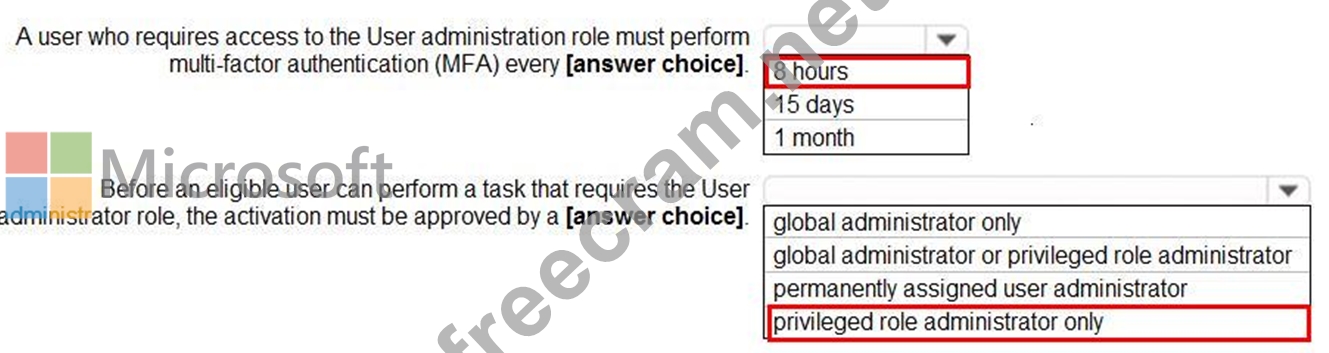 You have an Azure Active Directory (Azure AD) tenant that contains Azure AD Privileged Identity Management (PIM) role settings for the User administrator role as shown in the following exhibit.