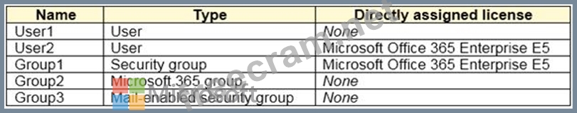 You have an Azure Active Directory (Azure AD) tenant that contains the objects shown in the following table.