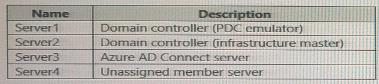 The Active Directory domain contains the on-premises servers shown in the following table.