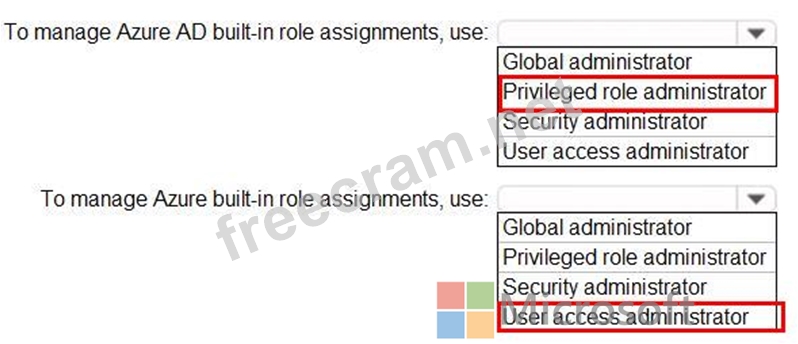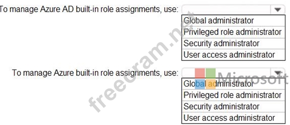 You need to identify which roles to use for managing role assignments. The solution must meet the delegation requirements.