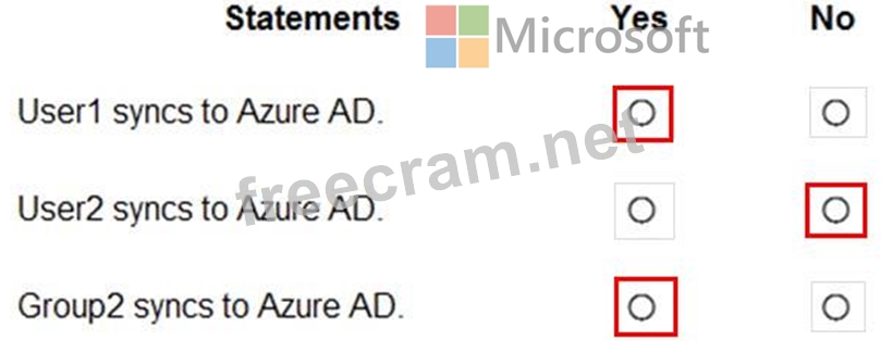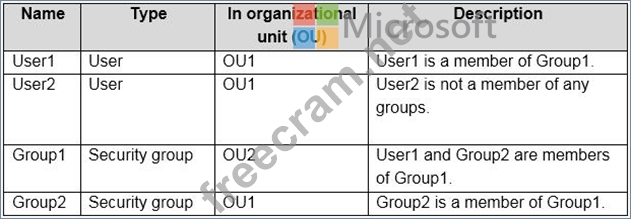 Your network contains an on-premises Active Directory domain named contoso.com. The domain contains the objects shown in the following table.