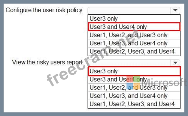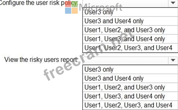 Which users can configure the user risk policy, and which users can view the risky users report? To answer, select the appropriate options in the answer area.
