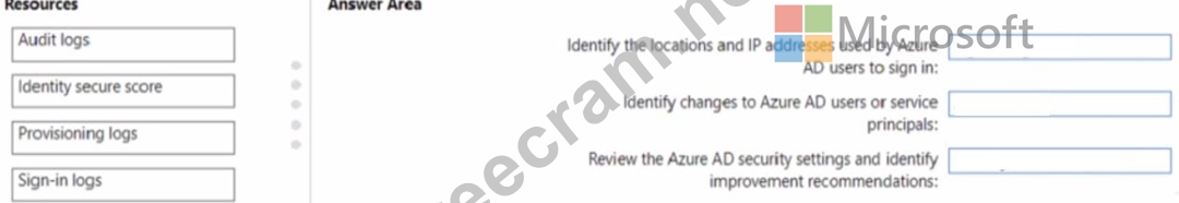 What should you use for each task? To answer, drag the appropriate resources to the correct requirements. Each resource may be used once, more than once, or not at all. You may need to drag the split bar between panes or scroll to view content.
