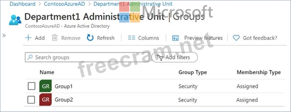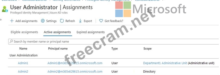 Admin1 has a only the permissions on Department1 administrative unit.