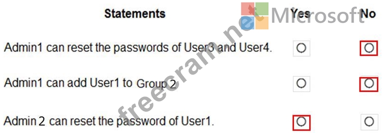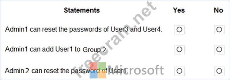 User3 and User4 are not assigned to Department1, so Admin1 has no permissions to reset passwords.