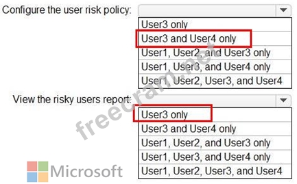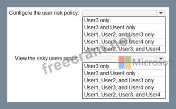Which users can configure the user risk policy, and which users can view the risky users report? To answer, select the appropriate options in the answer area.
