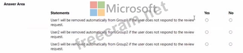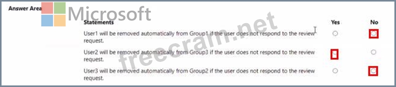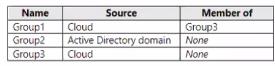 This should be N N N. User1's membership cannot be managed since he is a member of a nested group. User2's membership cannot be managed since he is a part of Group2 which is an AD group (not AAD). User3 is not the member of Group2.