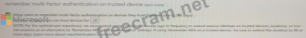 On February 1, 2021, you configure the multi-factor authentication (MFA) settings as shown in the following exhibit.