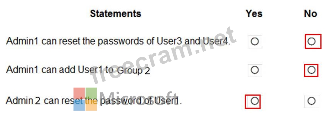 User3 and User4 are not assigned to Department1, so Admin1 has no permissions to reset passwords.