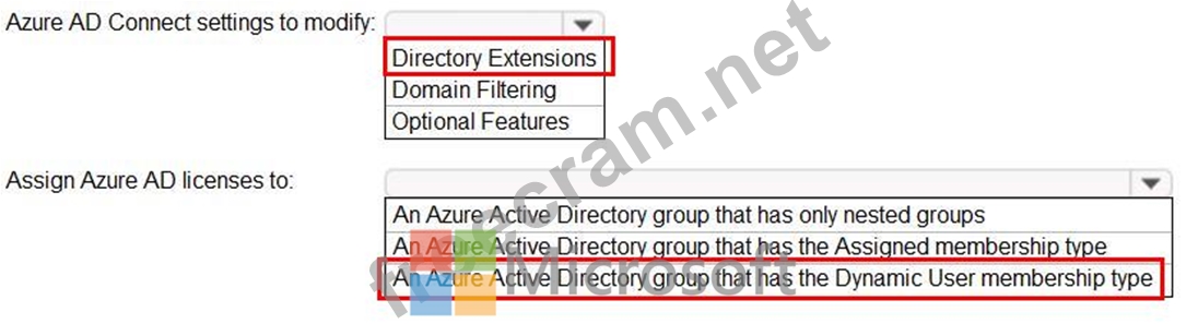 Litware wants to manage the assignment of Azure AD licenses by modifying the value of the LWLicenses attribute. Users who have the appropriate value for LWLicenses must be added automatically to a Microsoft 365 group that has the appropriate licenses assigned