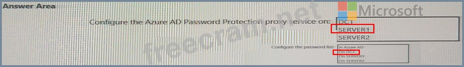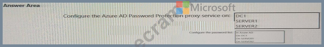 Server 2, then Azure AD. The password protection proxy is installed on a member server. You enable the banned p/w list in Azure AD, the proxy downloads it and passes it to the DCs in the domain.