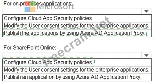 You need to implement on-premises application and SharePoint Online restrictions to meet the authentication requirements and the access requirements.