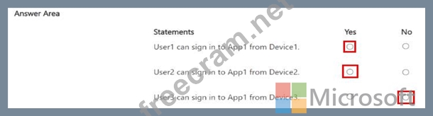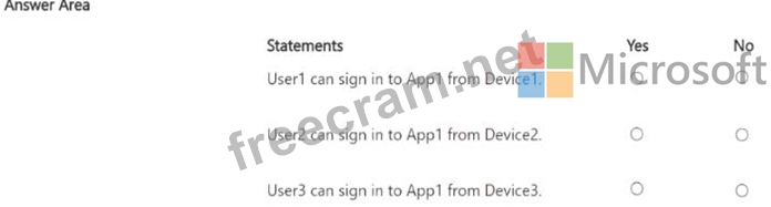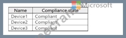 You have a Microsoft 365 subscription that contains three users named User1, User2, and User3 and an enterprise app named Appl. The subscription contains the devices shown in the following table.