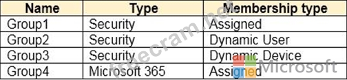 You have an Azure Active Directory (Azure AD) tenant that contains a user named User1 and the groups shown in the following table.