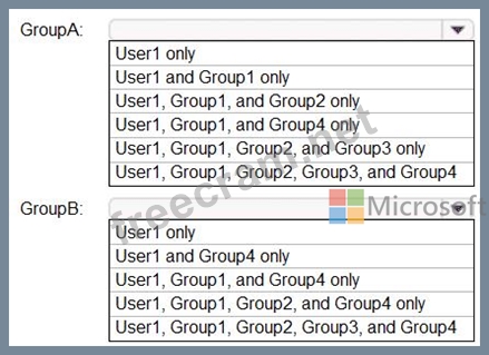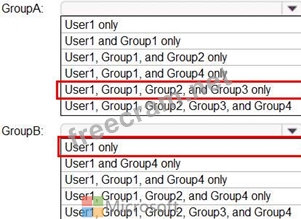 Which members can you add to GroupA and GroupB? To answer, select the appropriate options in the answer area.