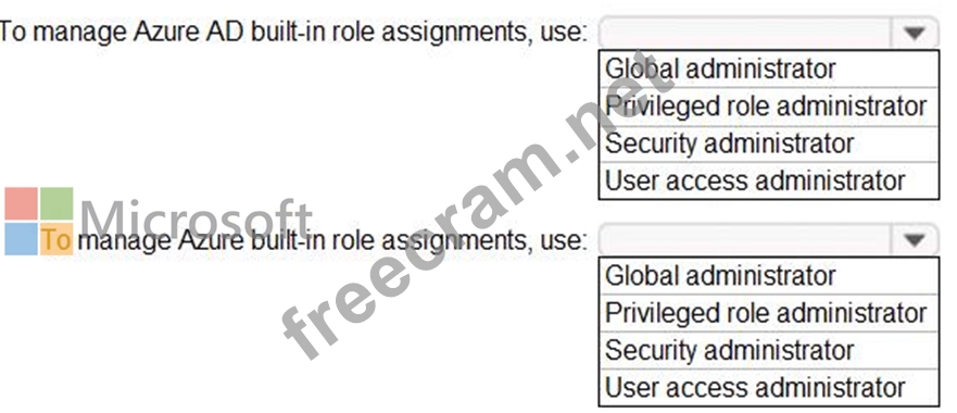 You need to identify which roles to use for managing role assignments. The solution must meet the delegation requirements.