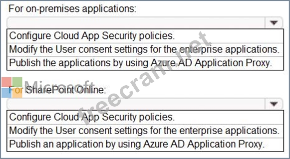 You need to implement on-premises application and SharePoint Online restrictions to meet the authentication requirements and the access requirements.