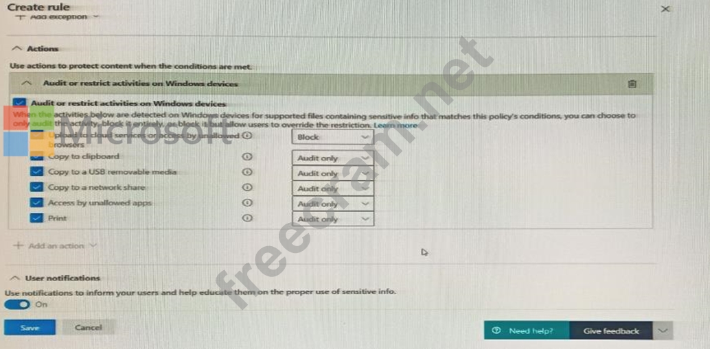 You have a data loss prevention (DLP) policy configured for endpoints as shown in the following exhibit. From a computer named Computer1, 3 user can sometimes upload files to cloud services and sometimes cannot. Other users experience the same issue. What are two possible causes of the issue? Each correct answer presents a complete solution. NOTE: Each correct selection is worth one point.
