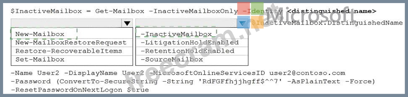 How should you complete the PowerShell command? To answer, select the appropriate options in the answer area.