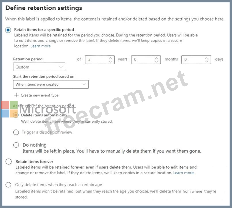 Explanation https://docs.microsoft.com/en-us/microsoft-365/compliance/event-driven-retention?view=o365-worldwide