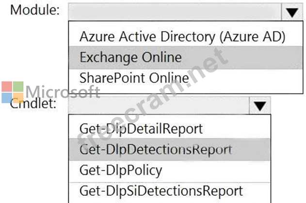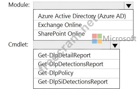 Which PowerShell module and cmdlet should you use? To answer, select the appropriate options in the answer area.