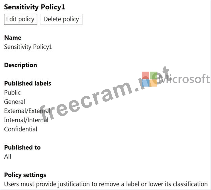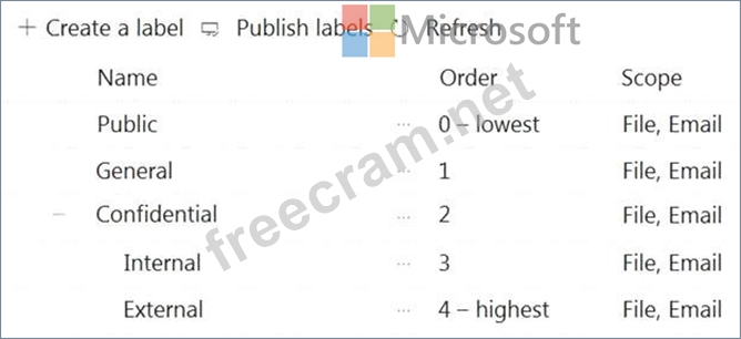 You create sensitivity labels as shown in the Sensitivity Labels exhibit.