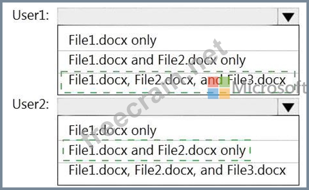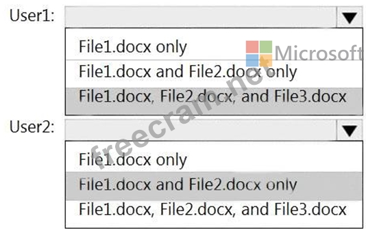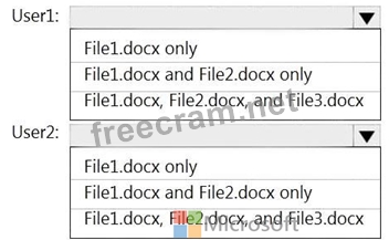 Which files can User1 and User2 view? To answer, select the appropriate options in the answer area.