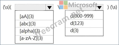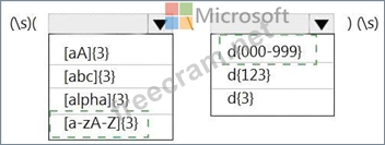 How should you configure the regular expression to detect the content? To answer, select the appropriate options in the answer area.