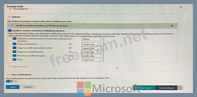 You have a data loss prevention (DLP) policy configured for endpoints as shown in the following exhibit.