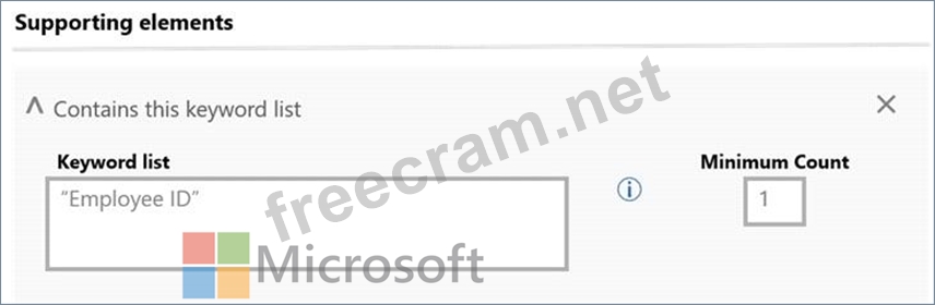 You create a new custom sensitive info type that has the matching element shown in the following exhibit.