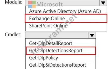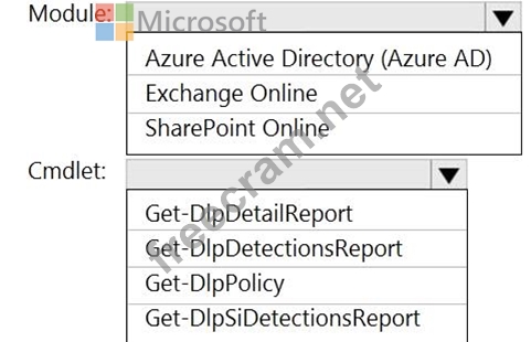 Which PowerShell module and cmdlet should you use? To answer, select the appropriate options in the answer area.