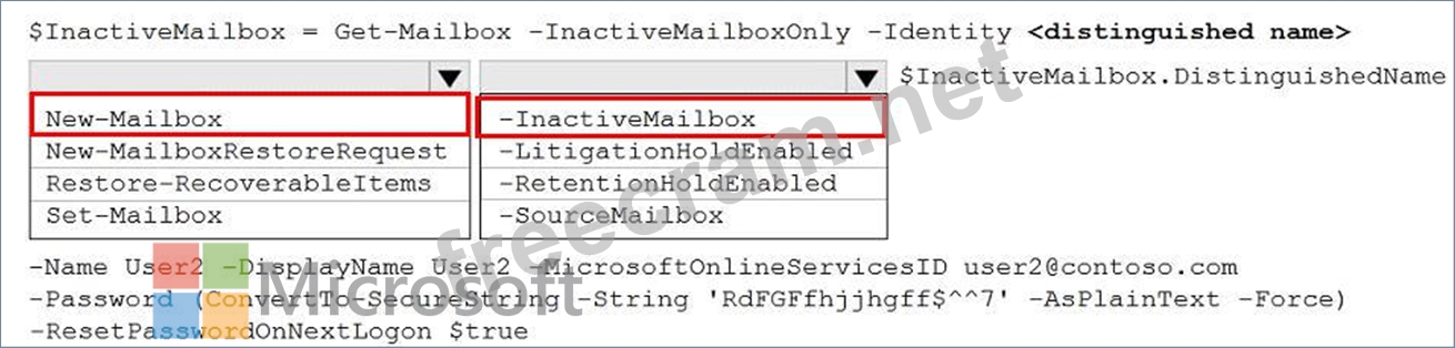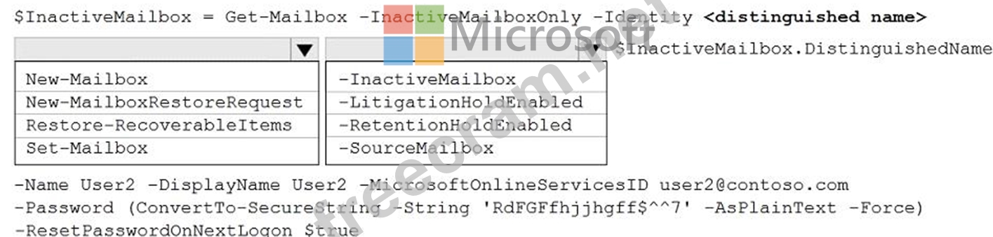 How should you complete the PowerShell command? To answer, select the appropriate options in the answer area.