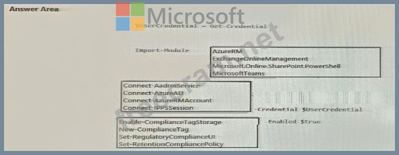 How should you complete the PowerShell script? To answer, select the appropriate options in the answer area.