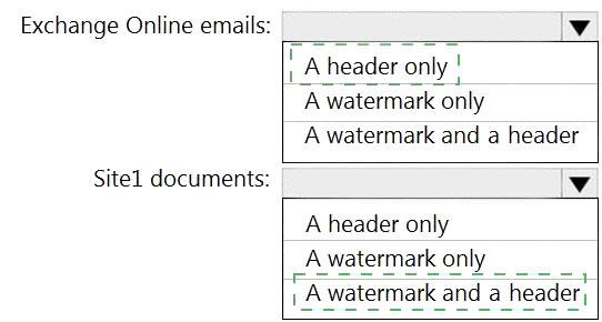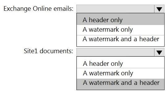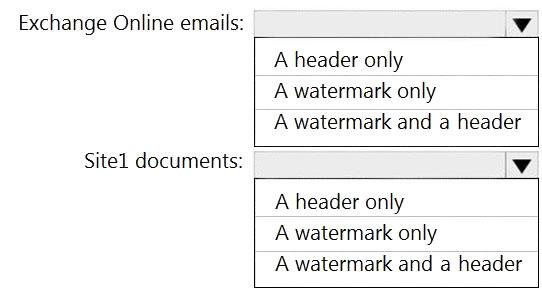 How will Sensitivity1 mark matching emails and Site1 documents? To answer, select the appropriate options in the answer area.