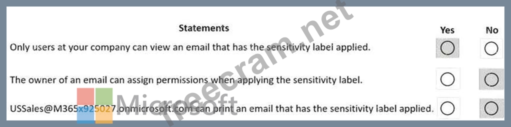 For each of the following statements, select Yes if statement is true. Otherwise, select No NOTE: Each correct selection is worth one point.