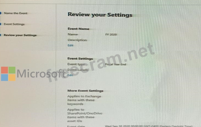 e deletion date is based on the date set in the retention event, not the file creation date. This means the retention countdown starts from the date of the retention event, which, according to your example, is set for Wednesday, September 30, 2020, for both FY20 and FY21.