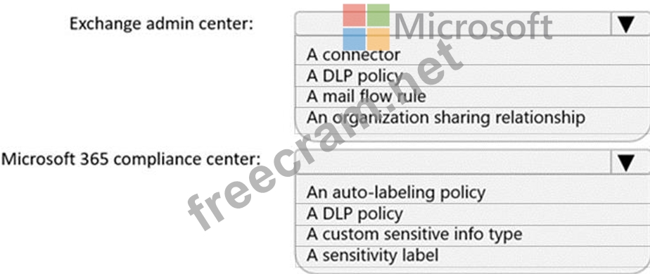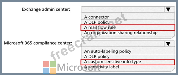 have tested this today and the answer is Mail Flow/DLP. The case study states that a sensitivity label has already been created, so all we need to do is find a way to apply this and encrypt.