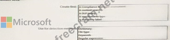 What should you created first, and what should you use for the detection method? To answer, select the appropriate options in the answer area.