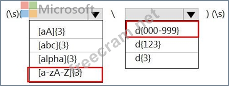 How should you configure the regular expression to detect the content? To answer, select the appropriate options in the answer area.