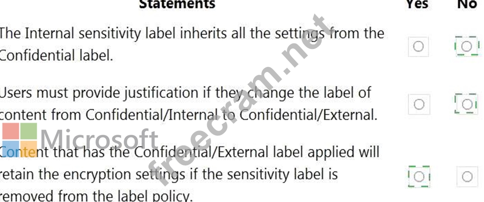 Question 22: You create a sensitivity label as shown in the Sensitivity L...
