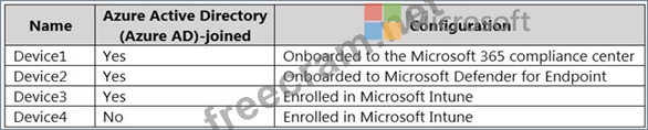 You have a Microsoft 365 E5 tenant and the Windows 10 devices shown in the following table.