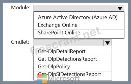 Which PowerShell module and cmdlet should you use? To answer, select the appropriate options in the answer area.
