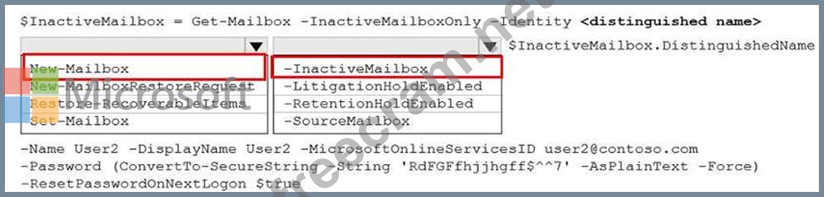 How should you complete the PowerShell command? To answer, select the appropriate options in the answer area.