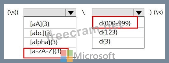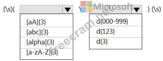How should you configure the regular expression to detect the content? To answer, select the appropriate options in the answer area.
