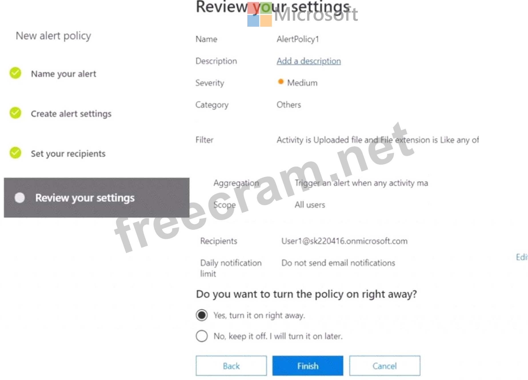 1 commentQuestion 18: You have a Microsoft 365 E5 subscription. You create an adap...